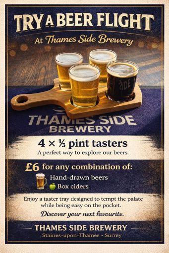 The Thames Side Brewery and Bar stocks our flagship bitters alongside our seasonal beers and carefully selected guest beers, ciders, wines and spirits