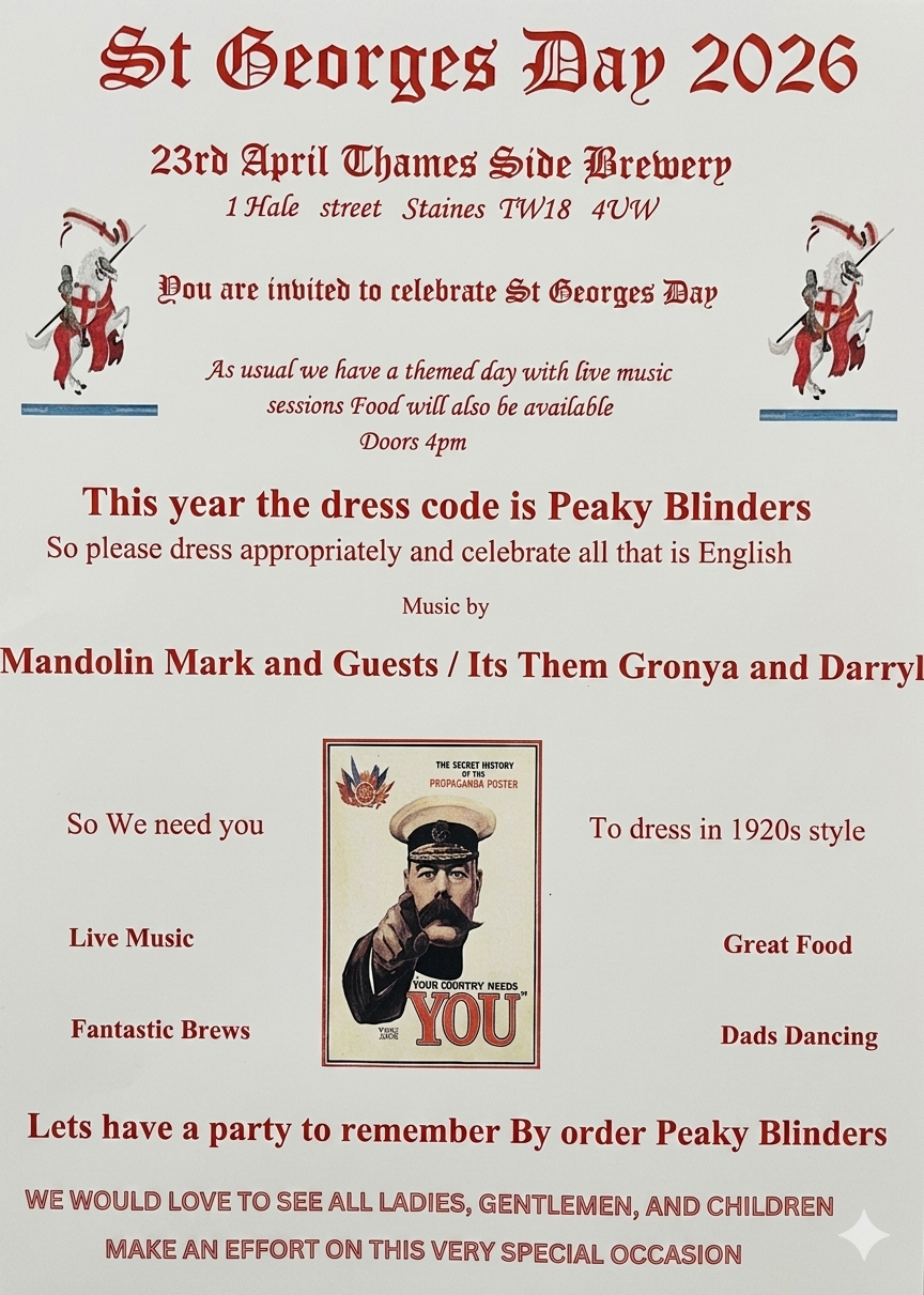 St Georges Day 2025 You are invited to celebrate St Georges Day with us. This year the dress code is Peaky Blinders. Music by Mandolin Mark and Guests / Its […]