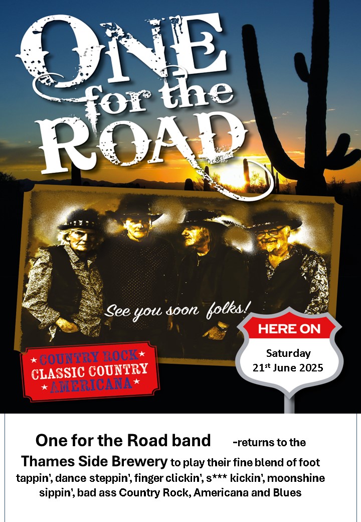 Free Entry It’s a warm welcome from ThamesSide Brewery as we host One for the Road. Bringing Americana with a kick to our stage. Covers and originals from this established band with a professional pedigree. *** ONE FOR THE ROAD Band **** play a fine blend of foot tappin', dance steppin', finger clickin', s*** kickin', […]